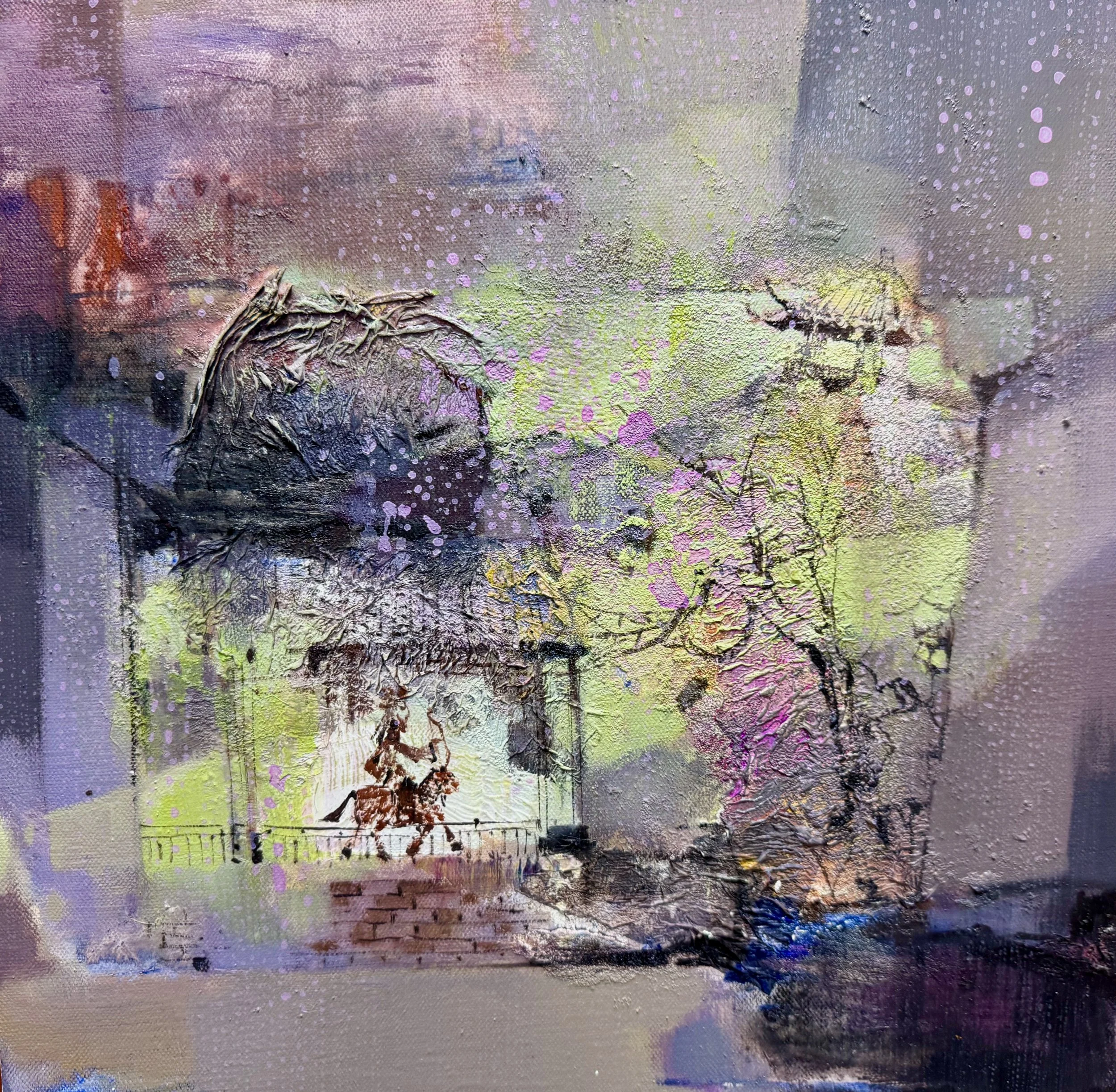 Here, technique becomes metaphor: paint that erodes yet endures, quietly recording the passage of dreams through layers of recollection. The result is not simply a scene, but a tactile meditation on how memory accumulates, weathers, and—against all odds—remains beautifully fragile.